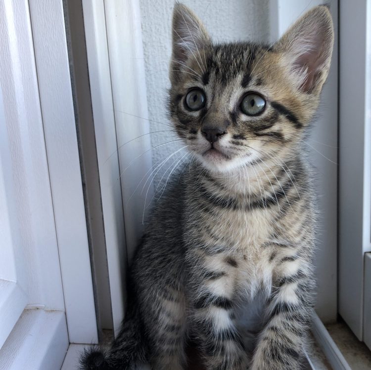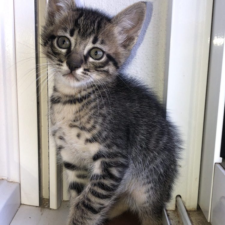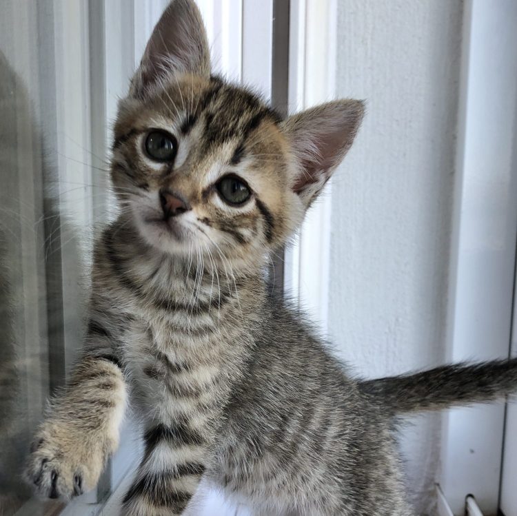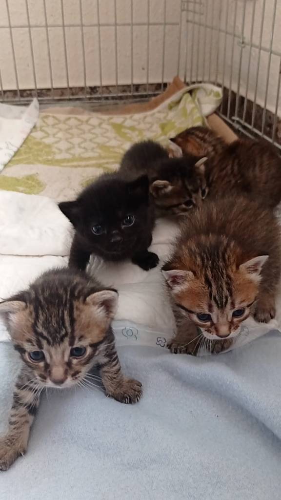 Los hijos de la Paqui son cinco: tres hembras atigradas, un macho atigrado y un macho todo negro. Aquí al lado tenéis una foto de todos juntos en fecha de 9 de abril del 2021.