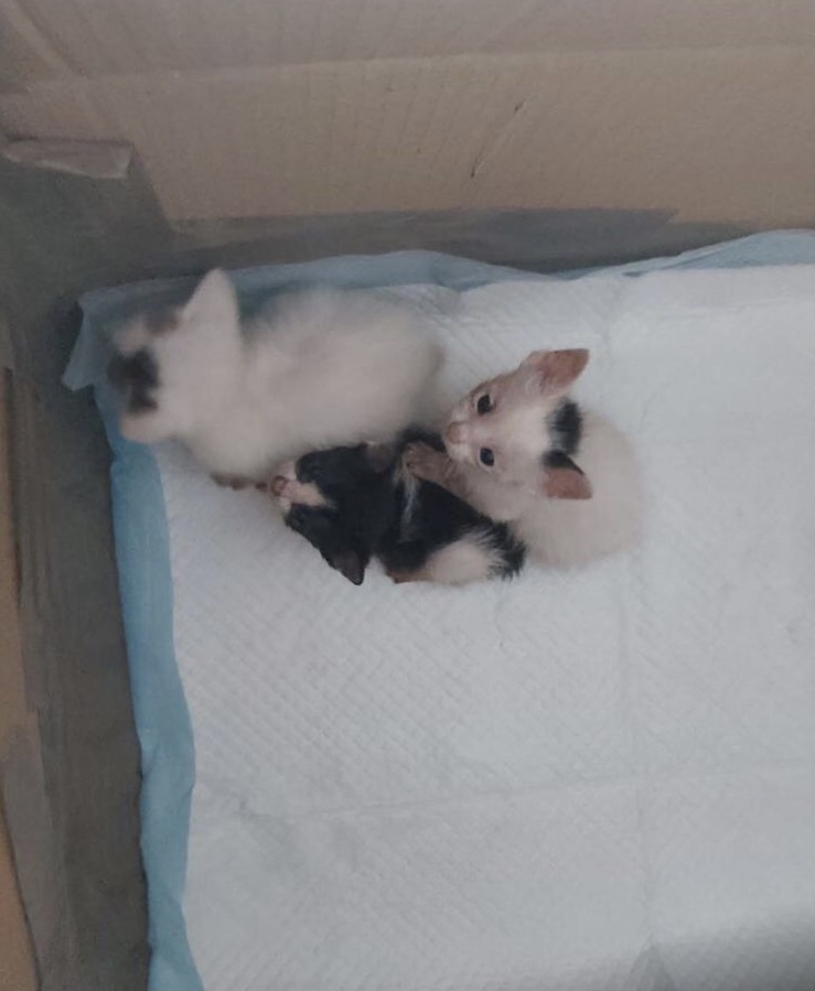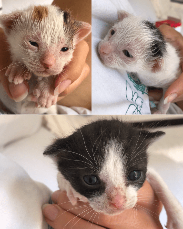 Hoy a las 9 h nos han avisado que han encontrado tres crías abandonadas por su madre. Son tres hembras de unas dos semanas y presentan los ojos constipados con mocos.