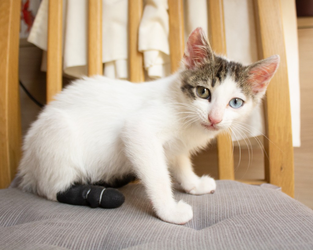 25 mayo 2021. Fue el día que pudimos capturarlo, con sus dificultades, y llevarlo en una casa de acogida. Ha necesitado mucha atención y afecto porque se vuelva dócil y confiado con los humanos.