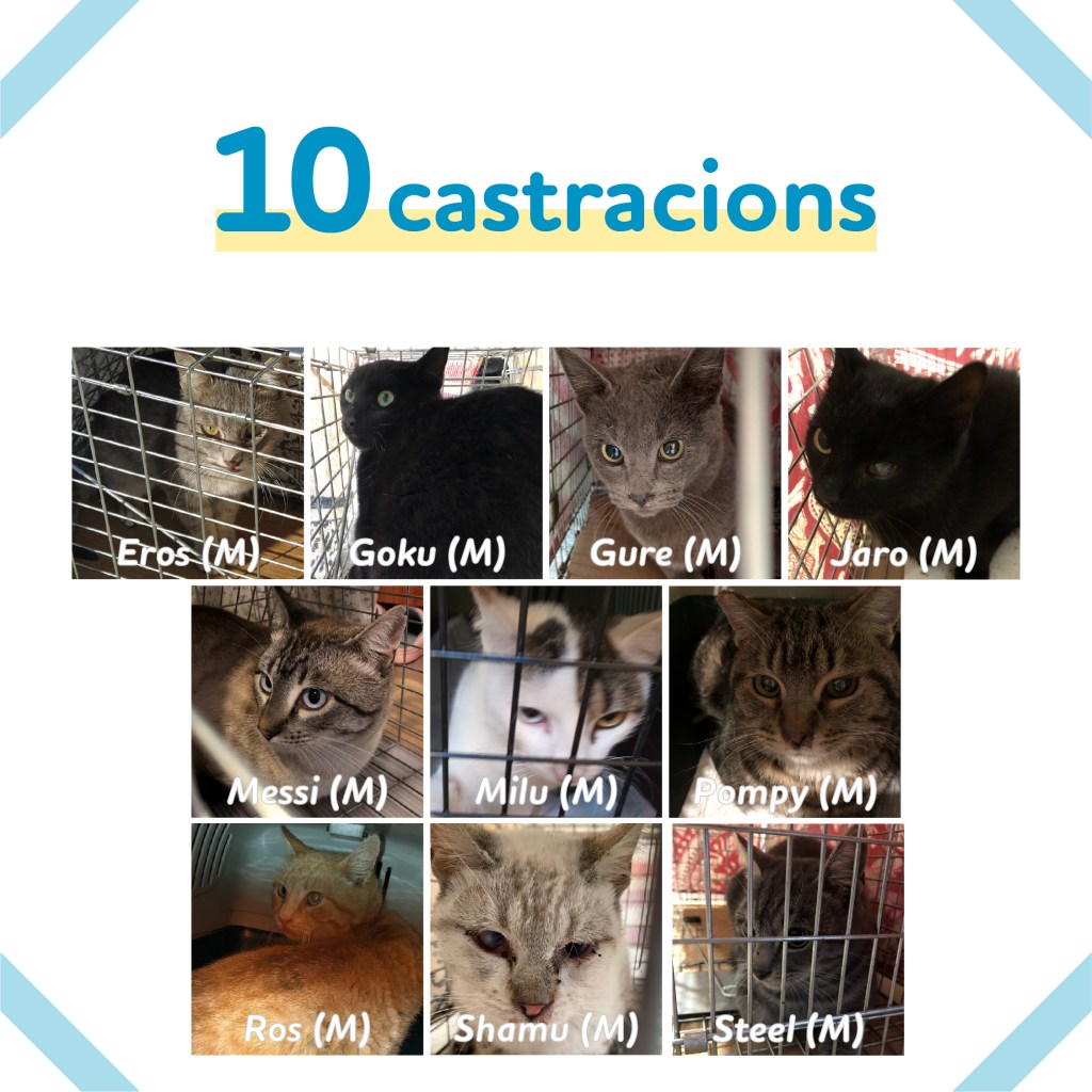 - Hemos castrado 10 machos y esterilizado 7 hembras. Con estos, ya hemos llegado a los 128 felinos de calle esterilizados.