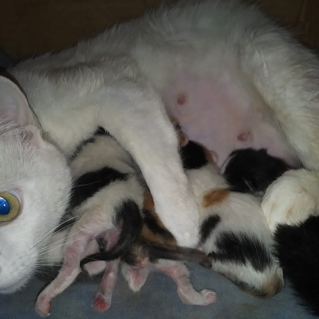 Esta semana capturamos esta gatita que deambulaba por nuestro pueblo buscando comida para esterilizarla. Nuestra sorpresa fue lo cariñosa que era y que estaba a punto de parir. Gracias a la colaboración de nuestro centro veterinario de confianza, @cvprozovalls, pudimos encontrarle un hogar sin que tuviéramos que dejarla en la calle esperando a encontrar una casa de acogida para ella y sus bebés.