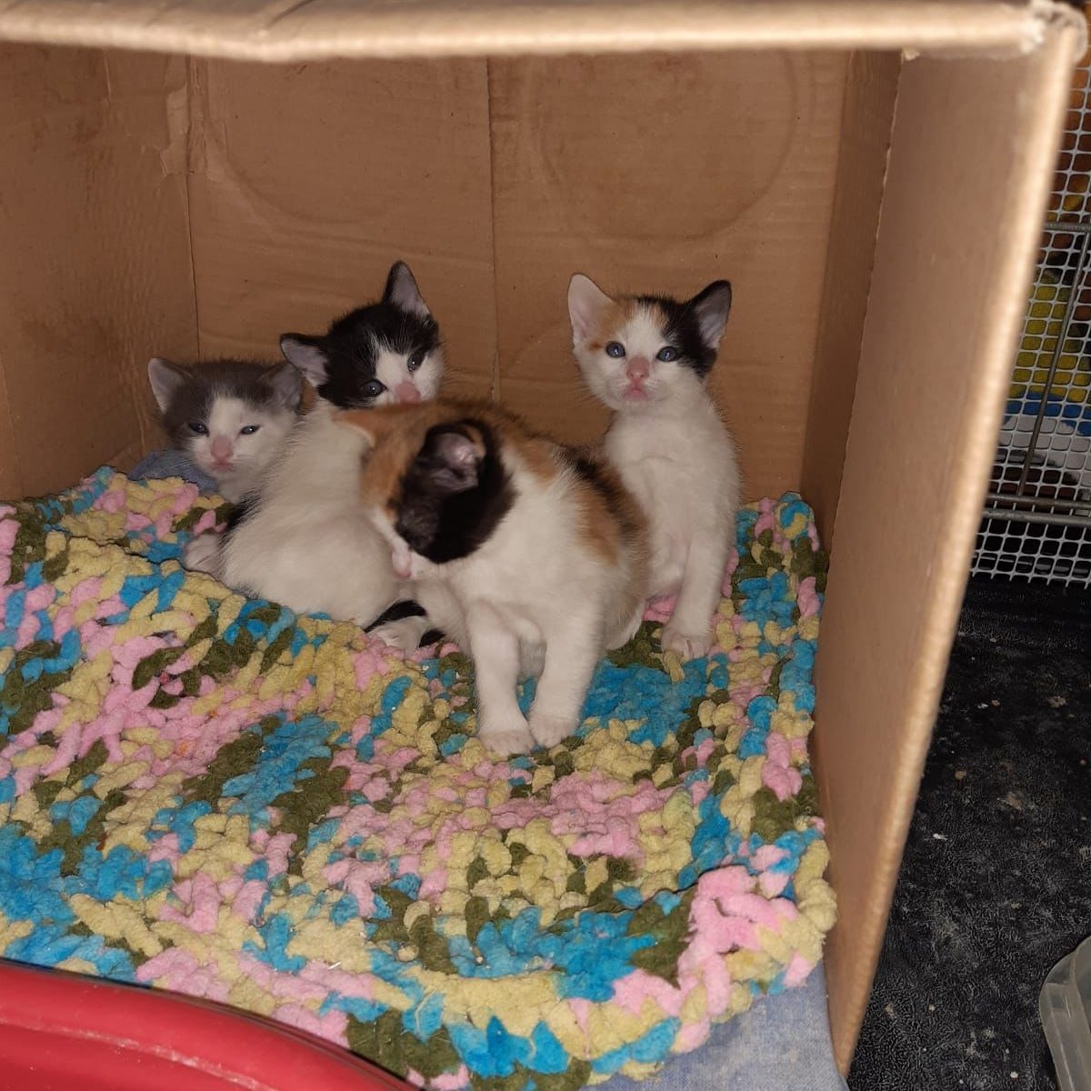 Ahora se encuentra segura en una casa, con comida, calor y sin el peligro que supone estar por la calle. En marzo aproximadamente, se dará en adopción, igual que a sus pequeñitos.