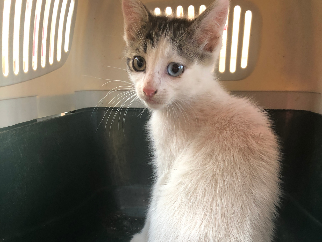 Rescat del Floquet, un gatet de dos mesos que hem rescatat de la colònia de la Deixalleria. Ara està en una casa d’acollida en cures.