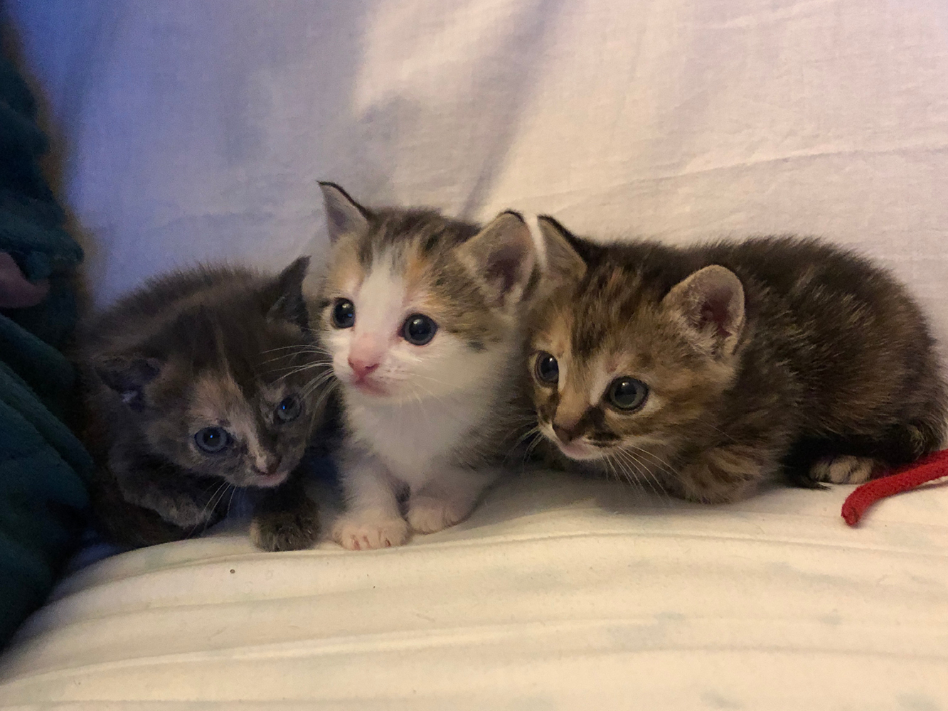 Rescat de tres gats abandonats, d’un mes i mig d’edat. Ara estan en una casa d’acollida per ser adoptats.