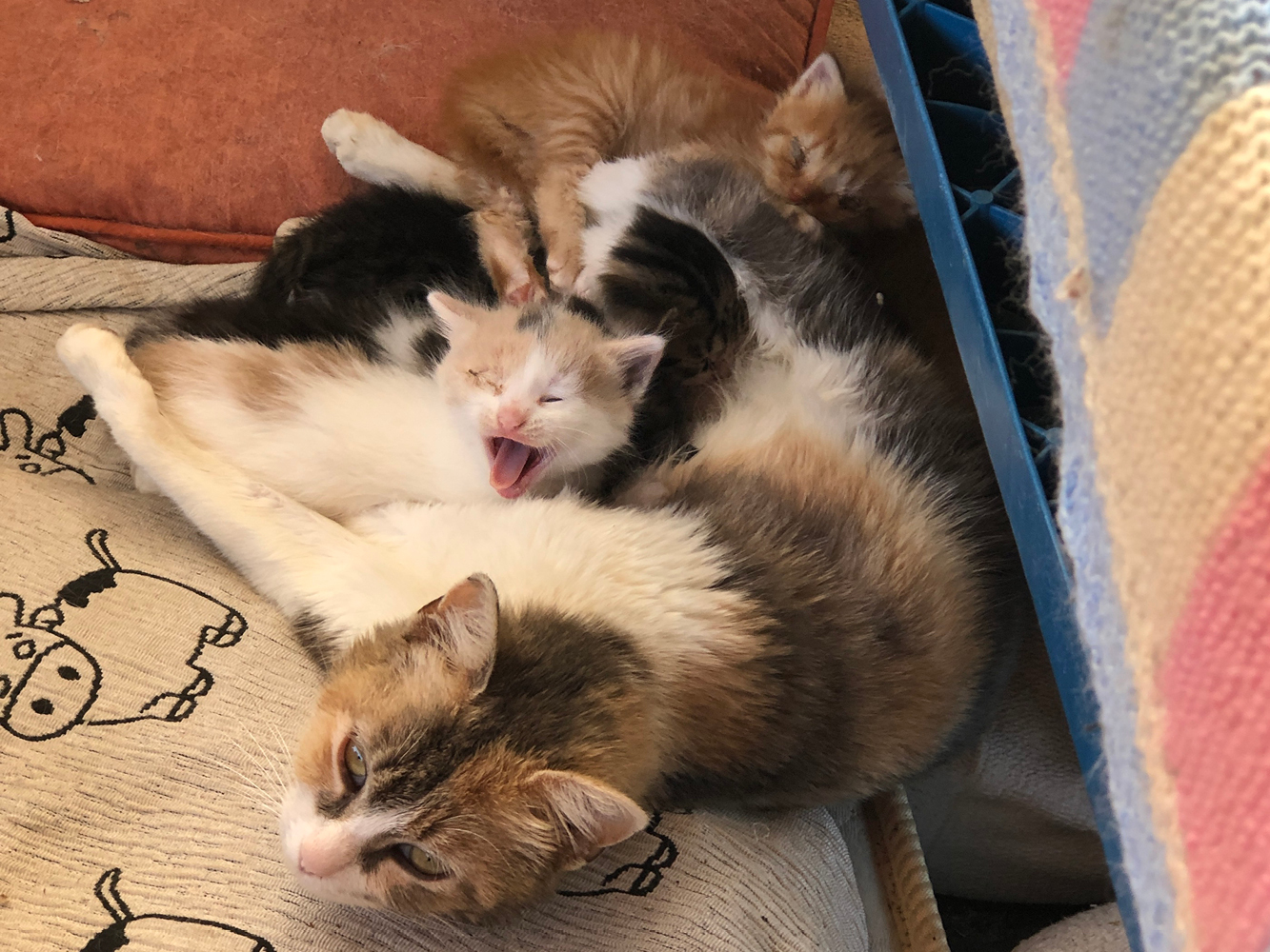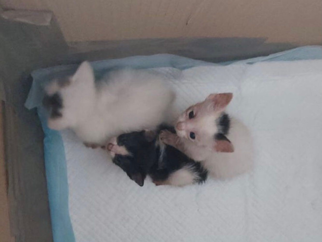 Rescat de tres gats abandonats, d’un mes i mig d’edat. Ara estan en una casa d’acollida per ser adoptats.